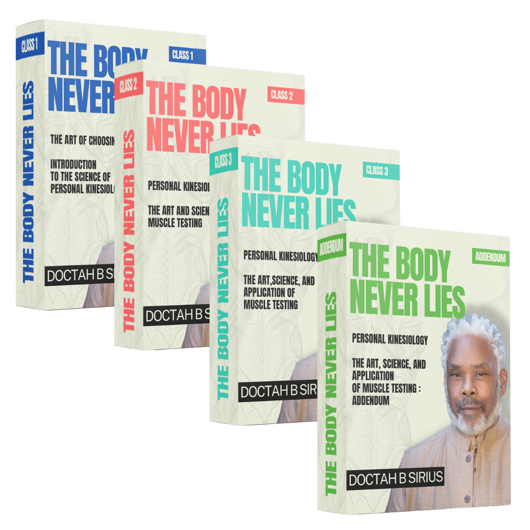 In this bundle you receive all of the Body Never Lies courses. Class 1 : The Art of Choosing - Introduction to The Science of Personal Kinesiology Class 2 : Personal Kinesiology - The Art and Science of Muscle Testing Class 3 : Personal Kinesiology - The Art, Science, and Application of Muscle Testing Addendum : Personal Kinesiology - The Art, Science, and Application of Muscle Testing : Addendum